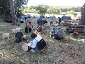 つづみの形やかがみもちの形をした丸太イスを作ろう!